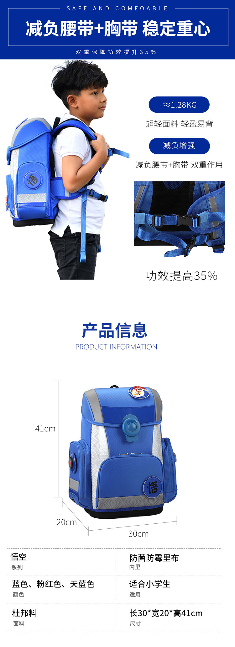 3-6年级学生书包 生产厂家 悟空系列