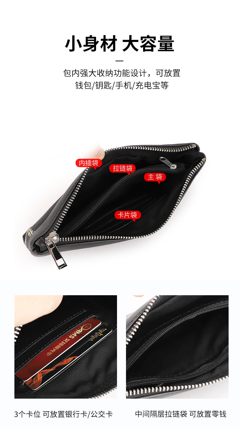 强大收纳功能设计,可放置钱包、手机、钥匙、充电宝等;
